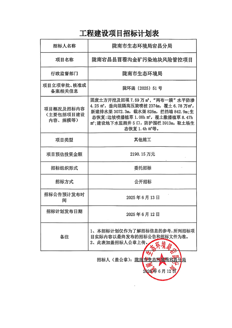 宕昌縣苜蓿溝金礦污染地塊風(fēng)險(xiǎn)管控項(xiàng)目