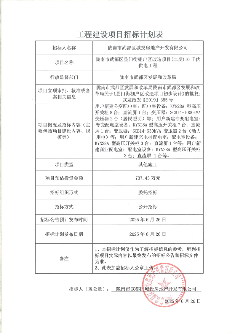 隴南市武都區(qū)縣門街棚戶區(qū)改造項目(二期)10千伏供電工程