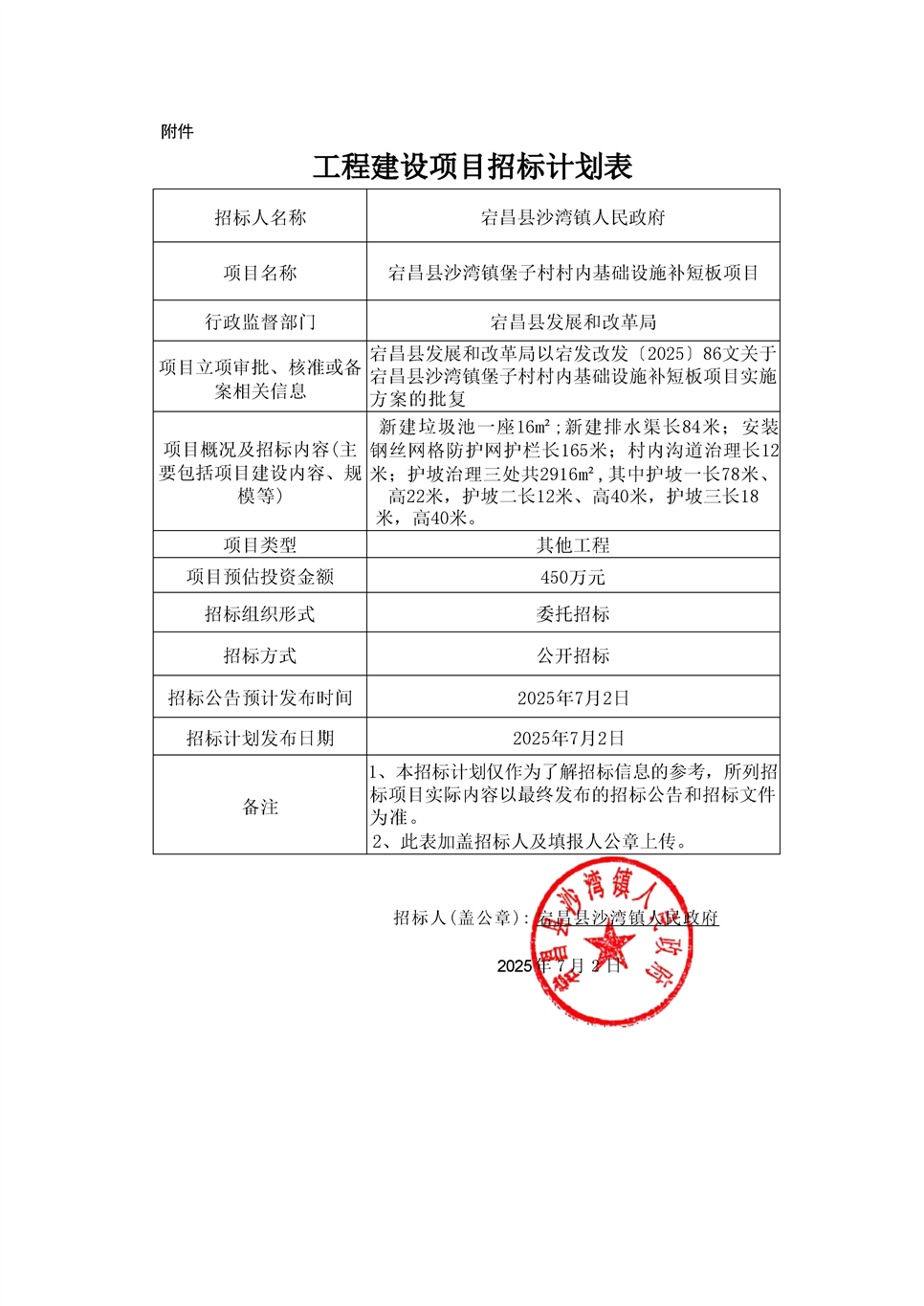宕昌縣沙灣鎮(zhèn)堡子村村內(nèi)基礎(chǔ)設(shè)施補(bǔ)短板項(xiàng)目