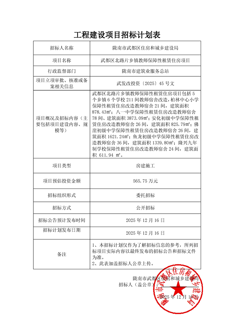 武都區(qū)西路片鄉(xiāng)鎮(zhèn)教師保障性租賃住房項(xiàng)目