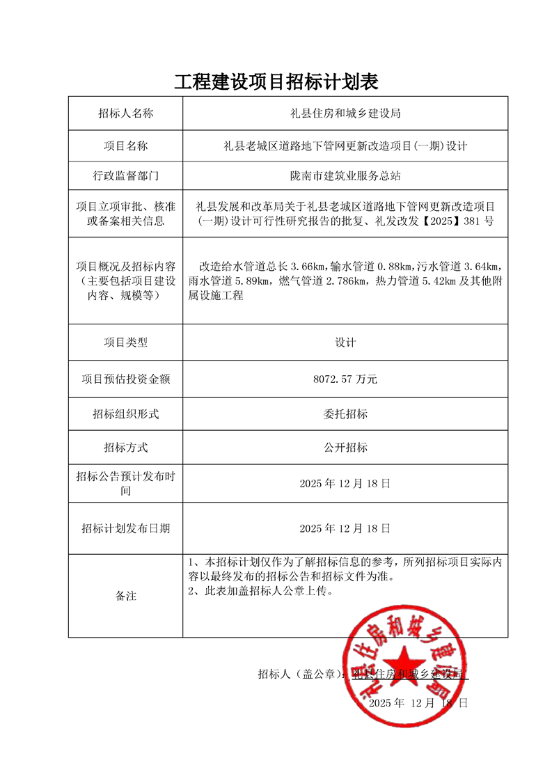 禮縣老城區(qū)道路地下管網更新改造項目(一期)設計