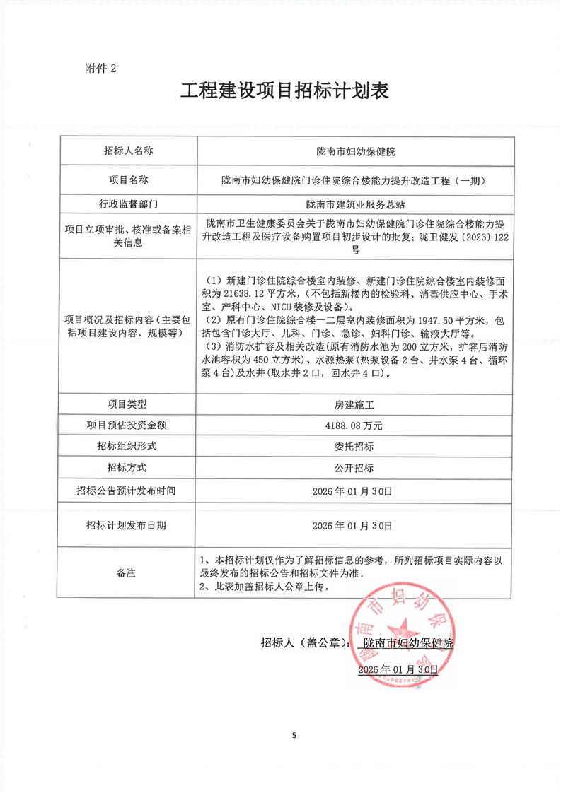 隴南市婦幼保健院門診住院綜合樓能力提升改造工程(一期)