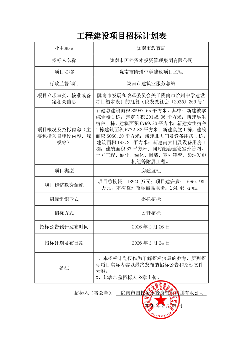 隴南市階州中學建設(shè)項目監(jiān)理