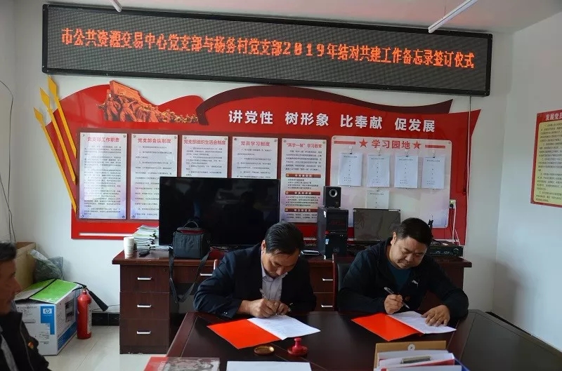 根據(jù)《中共隴南市委組織部關(guān)于扎實(shí)做好幫扶單位黨組織與貧困村黨組織結(jié)對(duì)攻堅(jiān)工作的通知》要求,市公共資源交易中心黨支部與武都區(qū)黃坪鎮(zhèn)楊務(wù)村黨支部在4月啟動(dòng)開展結(jié)對(duì)共建活動(dòng)基礎(chǔ)上,組織召開雙方黨支部結(jié)對(duì)共建工作聯(lián)席會(huì),進(jìn)一步探討和完善結(jié)對(duì)共建方案,簽訂了《隴南市公共資源交易中心黨支部與武都區(qū)黃坪鎮(zhèn)楊務(wù)村黨支部2019年結(jié)對(duì)共建工作備忘錄》。